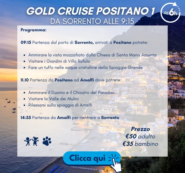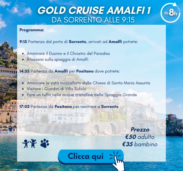 Ammira i maestosi faraglioni di Capri, le grotte blu e le acque cristalline che circondano quest’isola incantevole. Poi, naviga lungo la spettacolare Costiera Amalfitana, ammirando i pittoreschi villaggi incastonati tra le scogliere e le spiagge nascoste.